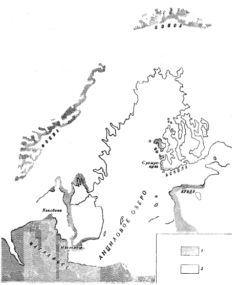 Эти древние рыболовы селились в основном вдоль берегов рек и озер внутри материка, так как побережье Балтики того времени (так называемое Иольдиевое море) представляло собой сплошные топи, куда стекала с возвышенностей вода с тающего ледника. Только небольшая часть нынешней Финляндии тогда находилась над водой – Ботнический залив заходил далеко на восток и лишь небольшая перемычка отделяла его от Белого моря, тоже поглощавшего тогда часть Карелии. Швеция начала заселяться чуть позже, видимо сразу после стаивания ледника – первые стоянки культуры Люнгбю в Бохуслене относятся к 7300–6700 гг. до н. э. Последний факт подтверждает предположение Андерссона, что внутренняя часть Скандинавии могла заселяться в первую очередь не с юга, а с побережий Северного и Норвежского морей. О том же пишет Н.И. Турина (Гурина…, с. 132) в отношении Кольского полуострова: первое проникновение людей туда шло с территорий Северной Норвегии и Северной Финляндии.
