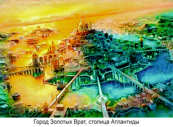 Поэтому необходимо немного разъяснить и дополнить описание столицы Атлантиды, которая называлась атлантами не только «Город Золотых Врат», но и «Посейдонис», «Халидокеан» и «Церценесс».