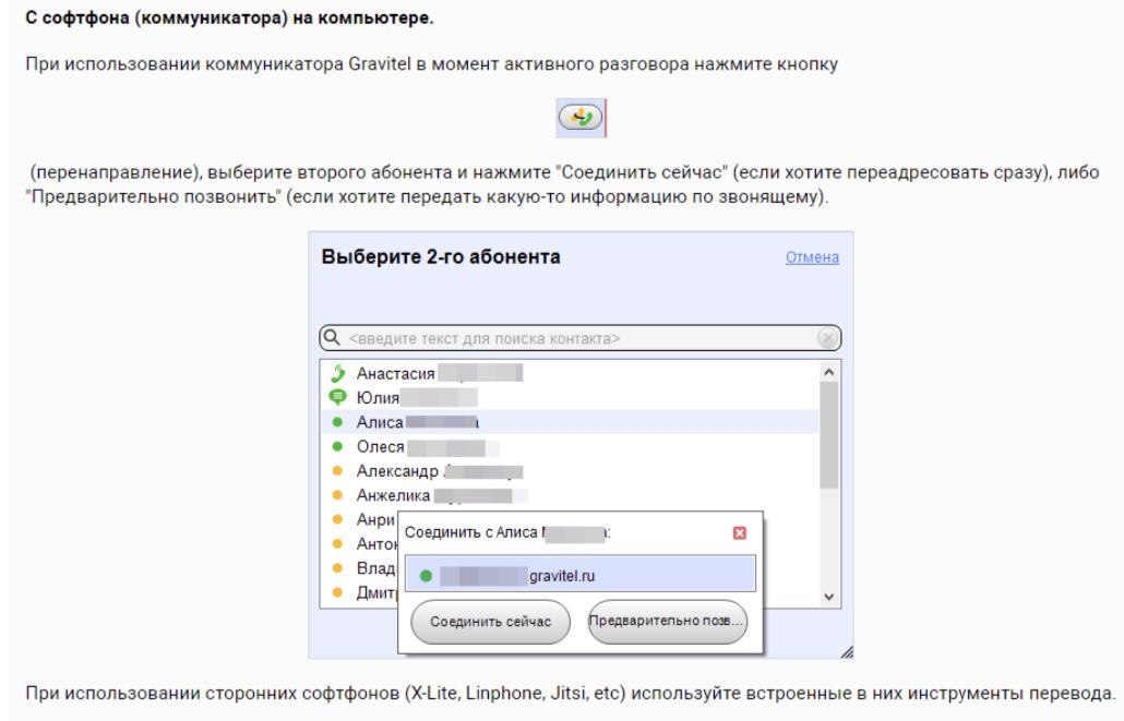 Если у агента техподдержки (технического специалиста) есть сложности с ответом, он может перевести клиента на коллегу.