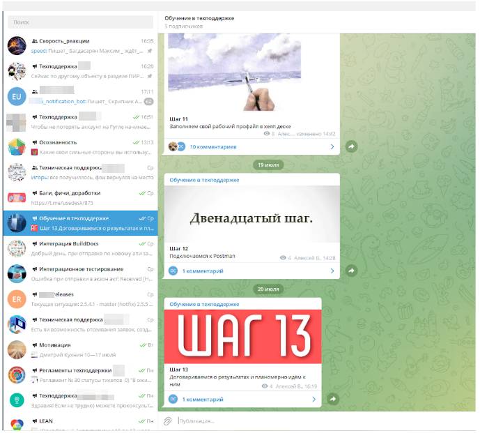 Нашим выбором «Лучшего корпоративного мессенджера» стал Telegram. Мы создали каналы, ветки, перетащили в «телегу» все необходимые правила жизни для работы в технической поддержке и поехали, как говорится, вперёд, к светлому будущему России.