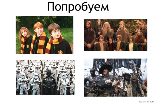 Есть четыре разных группы персонажей. Четыре фильма. Какая группа какой из четырех типов сообществ олицетворяет? (Рисунок 5)