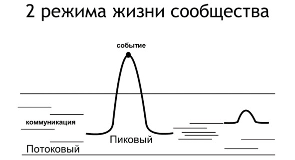 Режим обычной коммуникации мы называем потоковым, а события мы называем пиковым режимом. Произошло резко событие какое-то такое интересное, и потом еще разговоров на полгода.