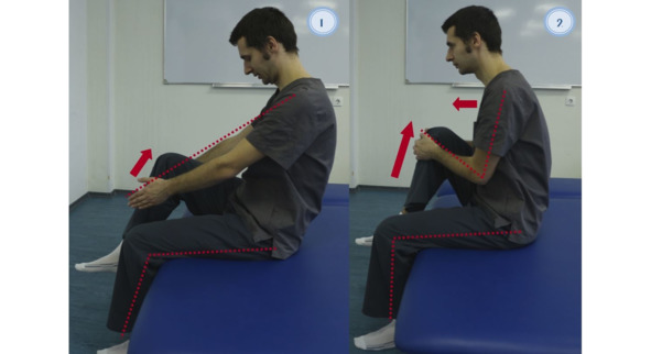 – Исходное положение «сидя на стуле», положите ладони на колени, наклонитесь вперед, после чего, выгните спину дугой, расправьте плечи. Затем сядьте прямо. Повторите 10 раз.