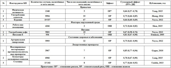Таб. 4. Факторы, уменьшающие риск развития БП.