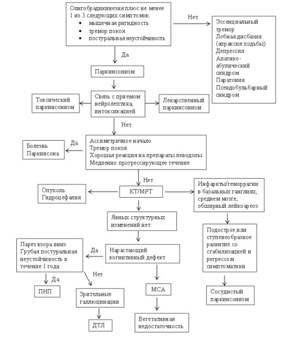 Рис. 17. Алгоритм диагностики паркинсонизма [Левин О. С., 2002].