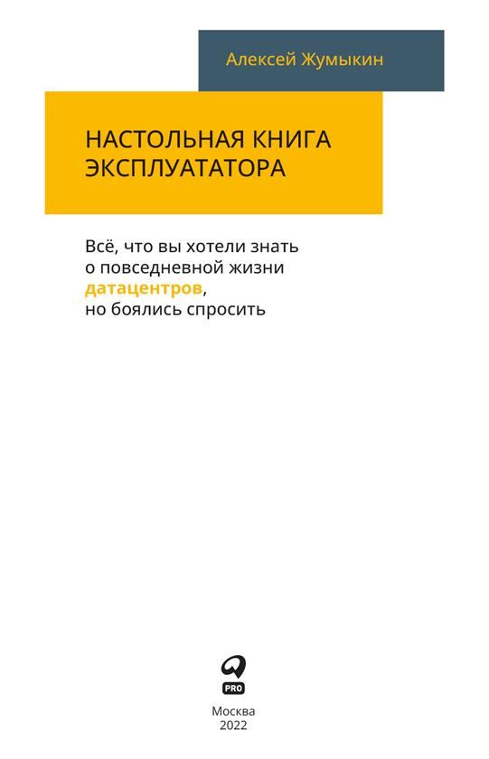 Эта книга не претендует на полное описание всех возможных аспектов работы датацентров, так же как и не содержит решений на все случаи жизни. Я уверен, что любой из действующих или бывших эксплуатационщиков может в какой-то момент не согласиться с моим мнением, добавить какие-то свои истории, методологии и ситуации. И это здорово.