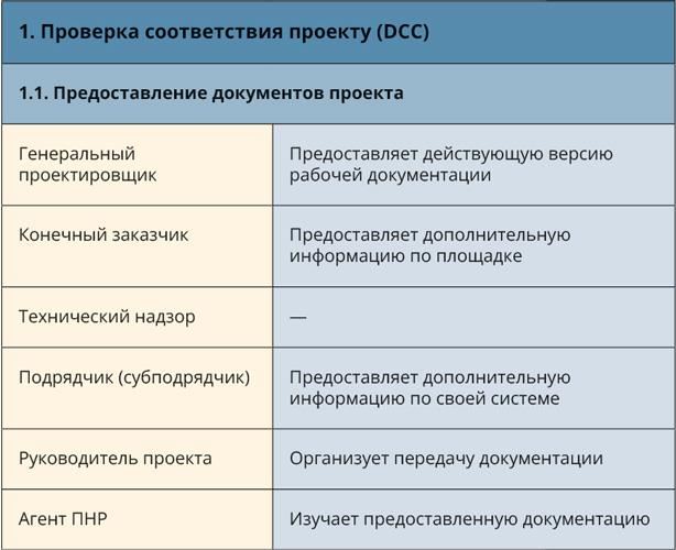 Design Compliance Check. Начальный этап пусконаладки, на котором проверяют, насколько проектные решения соответствуют требованиям технического задания и годятся для реальной эксплуатации в дальнейшем.