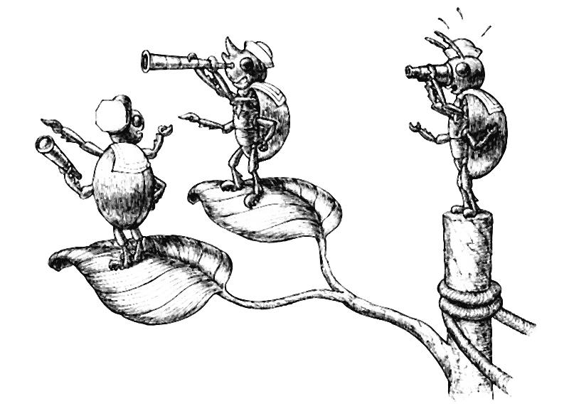 – Уважаемый Кузнечик! Не знаю, как у вас, но там, откуда мы пришли, день уже в самом разгаре, и спать тут не годится. А кроме того, на той стороне ручья у нас великие дела, они не будут ждать, пока вы выспитесь.