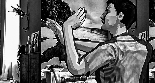Но надежды его не оправдались, в то время как опасения, как по закону подлости, наоборот подтвердились. Это действительно была оса. Большая, полосатая, будто преступник в тюремной форме, грозящая его жизни, она смотрела на него своими бездушными в сеточку глазами, слегка колыхаясь между полом и потолком. У её потенциальной жертвы так всё сжалось внутри, что Орбейз даже не задался вопросом может ли оса вот так по стрекозиному зависать в воздухе? В принципе может конечно. Должна мочь. Ей же нужно садиться на бутоны цветов, чтоб поживиться пыльцой. Там ведь не влётно-посадочная полоса, а вертолётная площадка. Не разгонишься. И всё же прямо вот так висеть, вызывая ассоциацию с совершенно иным крылатым созданием!
