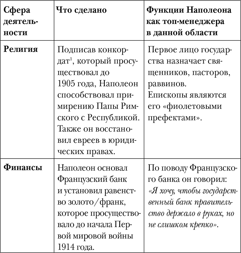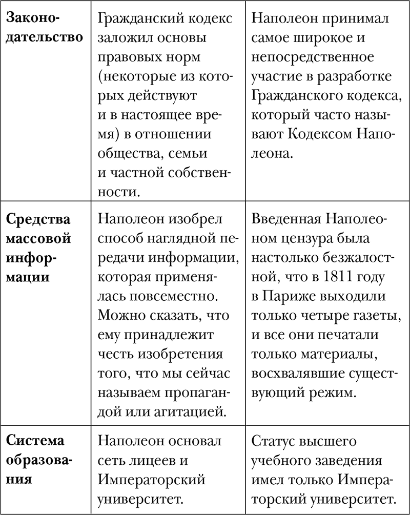 Во времена своего ученичества Наполеон много времени проводил за размышлениями и за изучением работ Юлия Цезаря. Точно так же политики и деловые люди следующих поколений находят неиссякаемый источник знаний в описаниях побед и поражений «маленького корсиканца». В его личности отразились достоинства и недостатки, присущие как политическому лидеру, так и топ-менеджеру.