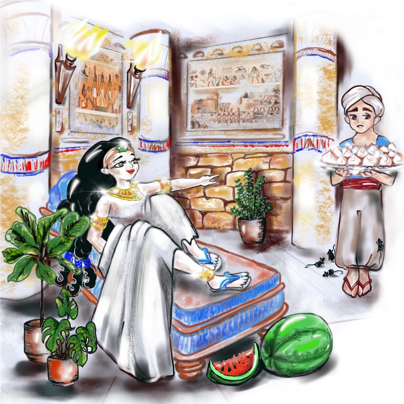Итак. Жила-была египетская принцесса. Она была избалованная и капризная, как это обычно бывает с принцессами. A больше всего она любила вкусно покушать. Однажды от торговцев она узнала, что есть страны, в которых зимой все покрывается белым пушистым холодным снегом.