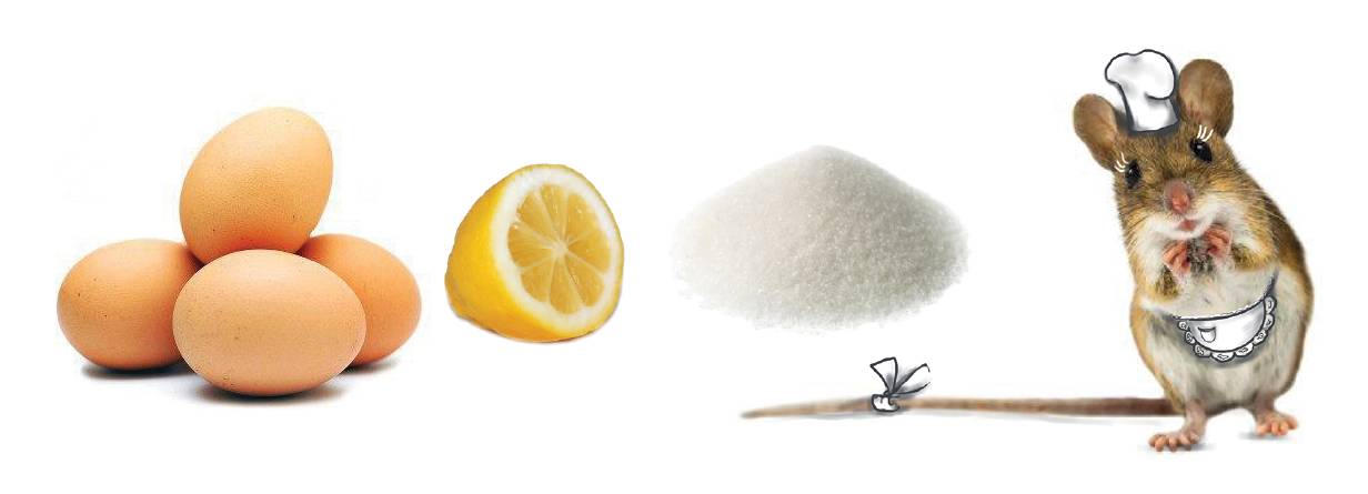 – Дайте мне 4 куриных яйца, 150 г сахара, 1 лимон и четыре чистых мышонка, – сказал он.