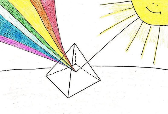 На стене светилась Пирамида. Сквозь неё прошёл Белый Луч и, волшебным образом, преобразился, превратился в разноцветную радугу, исходящую из другой прозрачной грани Пирамиды. Яркие цветные Лучи разлетались в разные стороны в бесконечность. Над каждым Лучом была надпись, с названием цвета. Фиолетовый Луч давно выучил их наизусть.