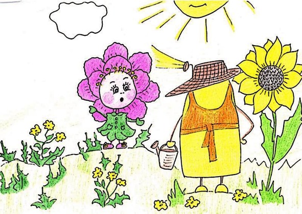 – Жёлтые цветочки у меня в садочке …, – напевал Жёлтый Луч, любуясь новым цветком, который он придумал и вырастил сам. Цветок получился крупным, с огромным количеством семян. Да, к тому же, он умел поворачивать голову к Солнцу.