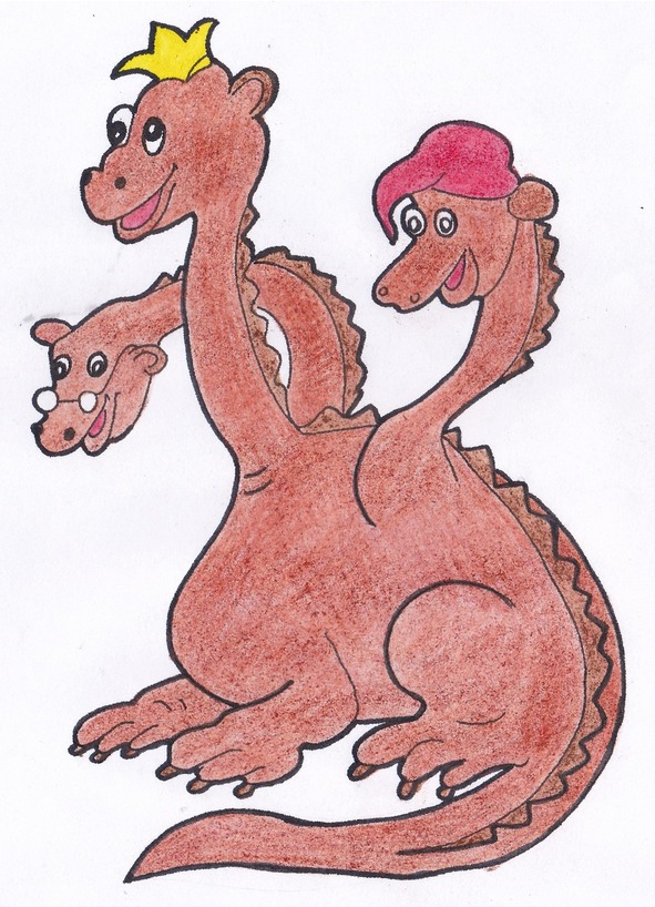 Головы заговорили быстрее, постоянно перебивая друг друга. Их голоса слились в сплошной гул, который «загипнотизировал» детей. Дети напряжённо смотрели на расшалившегося Дракона, не понимая ни слова.