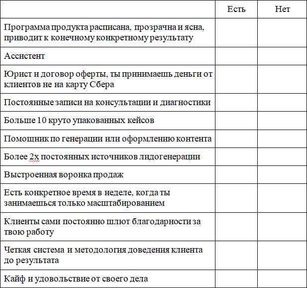 Чтобы получить больше от прохождения теста, на каждое «нет», запиши действия к себе в блокнот, конкретные действия, что ты можешь сделать, чтобы было «да».