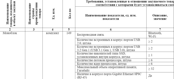 Описание объекта закупки приведено на странице 47 документации о закупке. Давайте посмотрим, какие требования заказчик установил к моноблоку.