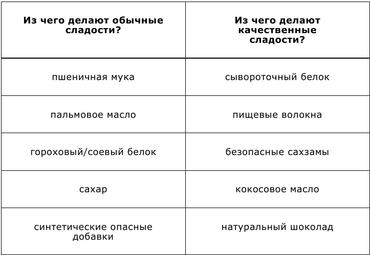 Давайте сравним на примере, чем качественные сладости отличаются от некачественных: