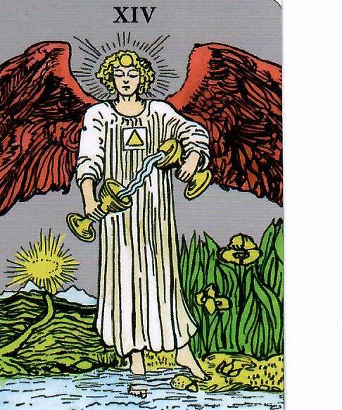 2.СА14 события: по этому аркану изменений не происходит. Терпение, есть залог успеха. Творческий процесс. Возможность заключить любое перемирие. Выступить парламентером в переговорах.