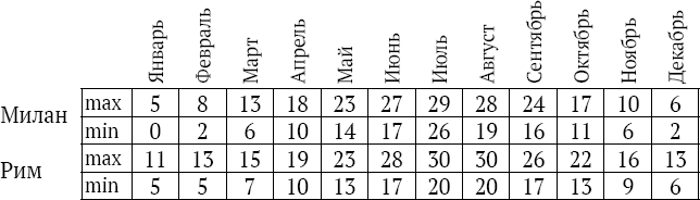Пиренейский полуостров разделен на три климатические зоны: полоса альпийского климата на севере, умеренный климат в долине реки По и средиземноморский климат, преобладающий на полуострове и островах. В Альпах зима длинная, холодная (до -15°С, часто дует пронизывающий ветер), снежная, но преимущественно солнечная. У подножия гор практически круглый год плодоносят цитрусовые, а на высоте более 2000 метров лежит снег до 200 дней в году, а вот лето здесь короткое и мягкое. На озерах севера страны и в долине реки По зима туманная и теплая, лето солнечное и влажное. На остальной территории страны, даже на Лигурийском побережье, зимы мягкие и теплые (температура воздуха редко опускается ниже нулевой отметки), летом сухо и жарко – иногда даже очень жарко, если вы заберетесь далеко на юг, но морской бриз часто смягчает палящий зной. Когда дуют ветра сирокко из Северной Африки, вся страна «спекается» от жары (до +38°С). В летний период на юге полуострова, на Сицилии и Сардинии, нередки месяцы совсем без дождя.