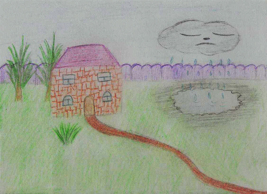 Мотылёк аккуратно положила письмо на стол, что бы вечером снова перечитать. Она взяла с собой сумку и вышла из дому. Девочка обратила внимание, что справа от дома разлилась лужа, в которую падали капли. Но день был ясный и Мотылёк не приметила на небе даже крохотной тучки. Облака столпились над её домом и о чём-то перешёптывались. Они могли принимать любые формы и обличья. Сегодня, например, в небесах парили пышные облако-тюльпан, облако-тигр, облако-корабль и бесформенный клок, которым оказалось облако по имени Слезинка. Она то и проливала поток слёз на лужайку Мотылька.
