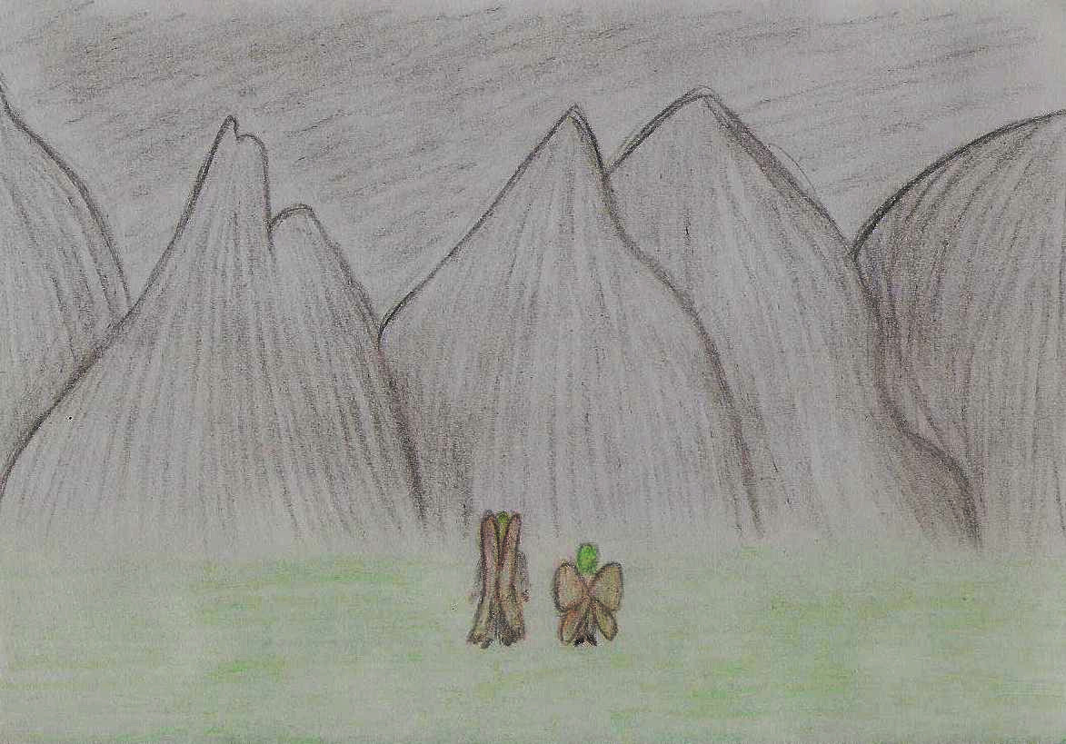 За скалой громыхало. Сверкали молнии, ударяясь о каменные глыбы. Мотылёк слышала, как разбивается камень и множеством осколков сыпется вниз. Мотылёк не могла даже в самом страшном сне представить, то, что она увидела наяву. Они стояли на каменном уступе, а перед ними распростёрла просторы Долина, покрытая серым мраком, не видавшая солнечного света даже в самый погожий летний день. Она словно отгородилась от внешнего мира острыми скалами. Небо над ней было покрыто чёрными тучами.