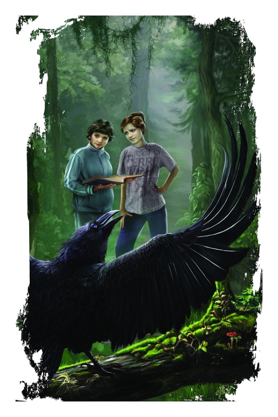 Взмахнув крыльями, Ворон перепрыгнул на соседнюю корягу. Вытащив из своего оперения очки и, нацепив их на свой длинный нос, он внимательно посмотрел на книгу: