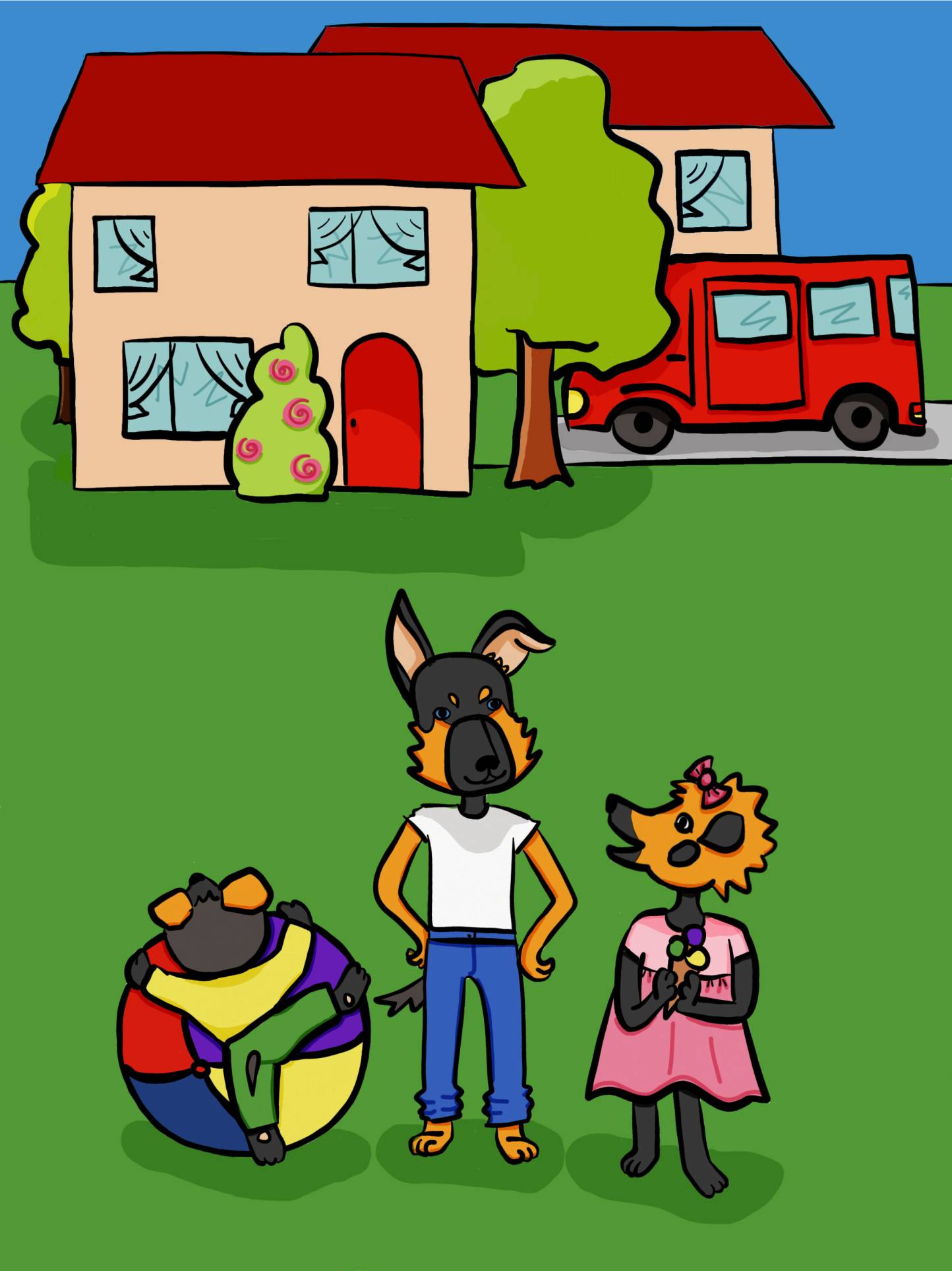Hello, my name is Rex. I am a puppy. I live in a big house with my family. I have got a mother, a father, a sister and a brother.