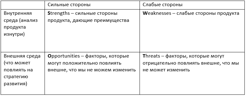 Работа начинается с анализа. Я использую простой и очень удобный метод SWOT, предложенный еще в 1963 г. в Гарварде профессором Кеннетом Эндрюсом.