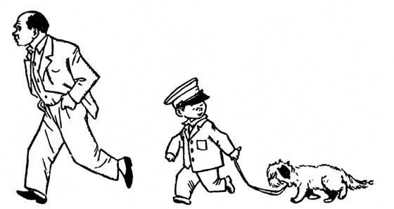 Щенок не откликнулся на имя Рекс. Тогда я легонько дёрнул папин ремешок, и щенок поплёлся за мной, понуро опустив голову, а папа шёл немного впереди нас, то и дело подтягивая спадавшие брюки. Изредка он оборачивался и выкрикивал то ласково, то строго: