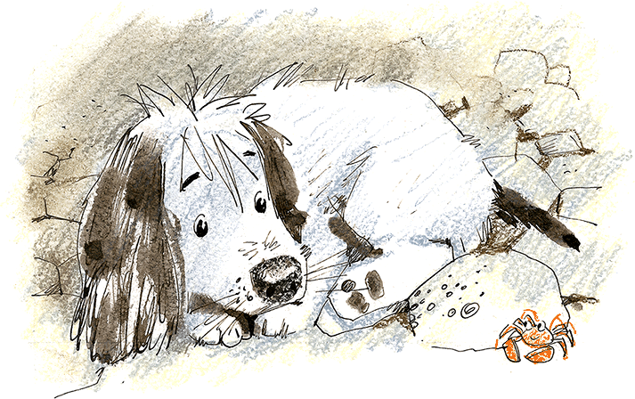 Кышу я велел ждать в тенёчке, но он и не рвался со мной. Положив голову на лапы, он ждал, когда из-под камня покажется крабик.