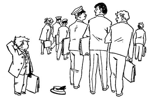 Я стоял, потирая рукой больное место, стараясь не расплакаться, и моя фуражка валялась под ногами в мокром снегу.