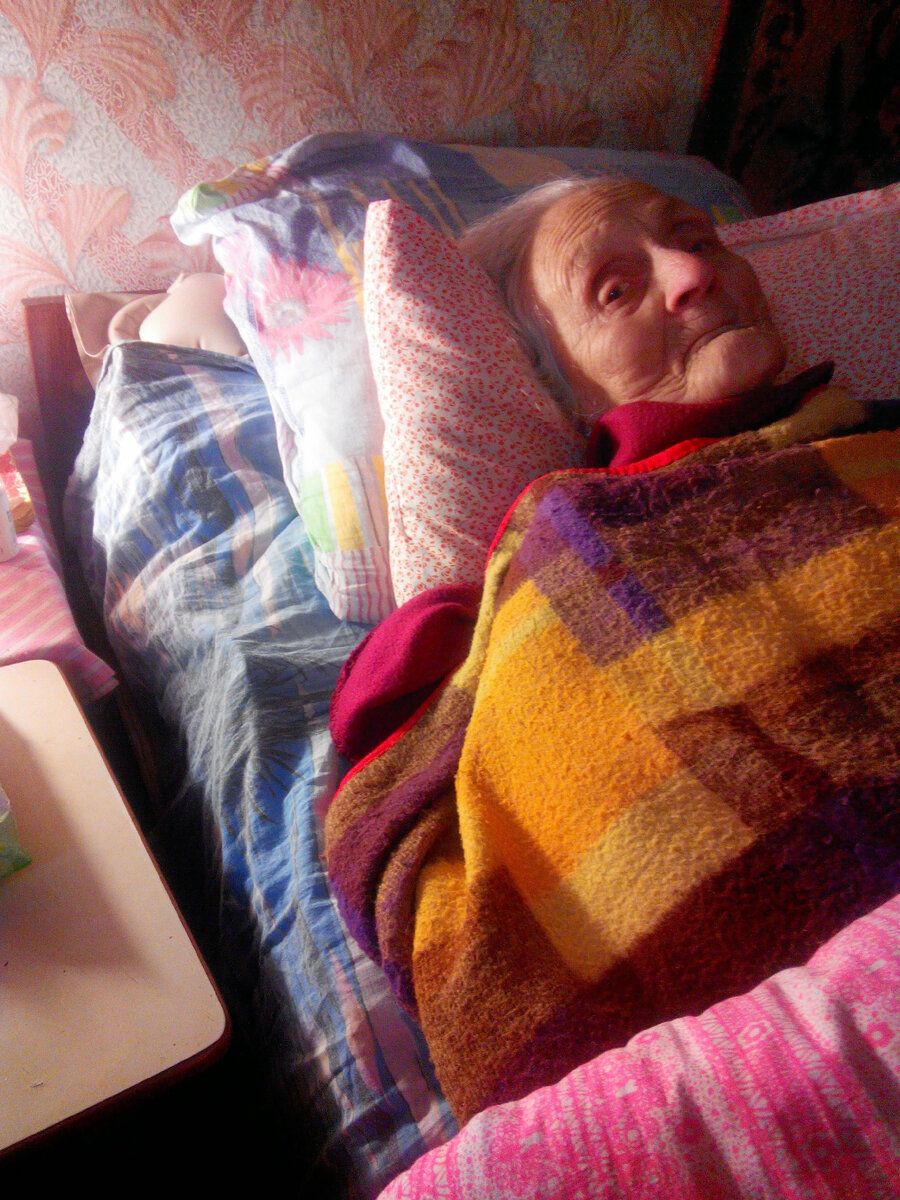 Я дала бабушке попить и уложила её поудобнее.