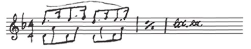 – Ритм, который ведут струнные, тоже неровный и напоминает галоп. Оформляя этот эпизод, я вспоминал «Сражение Танкреда и Клоринды» и узнаваемую манеру струнных Монтеверди. У него звучат трезвучия Ля минора на первой, второй и третьей струне, а у меня они исполняются на гитаре.