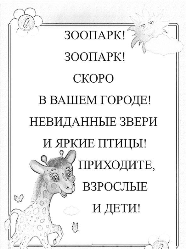– Я гуляла на площади, мамочка, – сделав глоток воды, медленно повторила Мора, стараясь говорить рассудительно, как взрослая. – А там афиша! К нам приедет зоопарк!