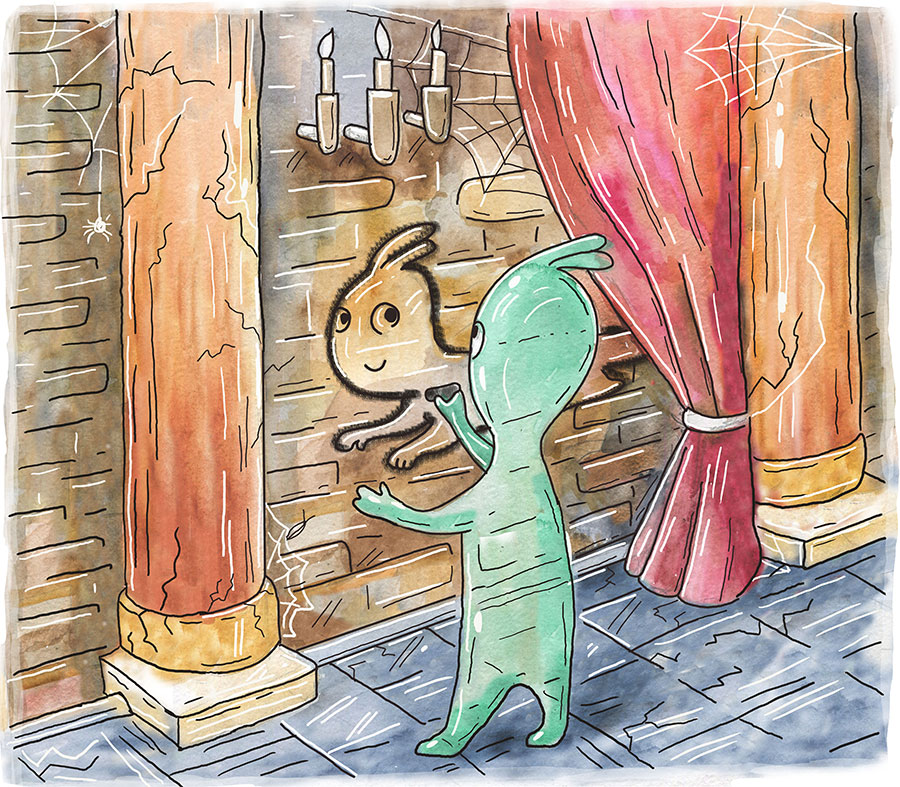 Раз, играя в замке, друзья нашли кусок угля и Уф нарисовал на стене маленький портрет себя. С тех пор в городе появилась легенда о том, что в старом замке живет привидение.