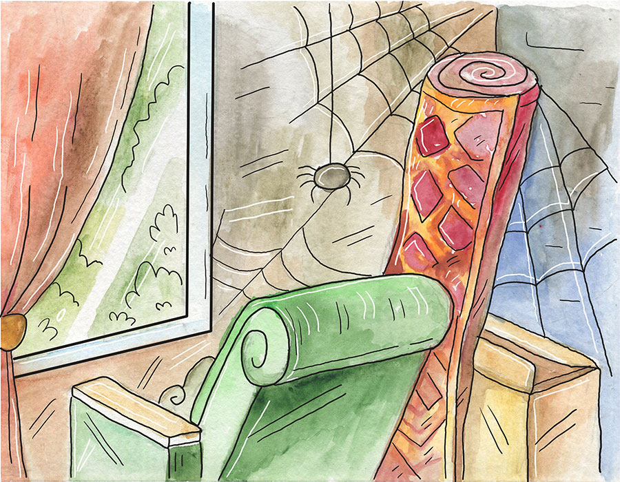 В комнате было пыльно, немного душно. На полу лежали коробки, сундуки и скрученный ковер. В углу стоял старый мольберт. Зеленое кресло с деревянными подлокотниками смотрело в окно. На кресле лежала скрипка с одной струной. А с улицы, касаясь ветками окна, от посторонних глаз комнату скрывал дуб и казался ее продолжением. Было понятно, что комната хранит ненужные музею вещи и в ней никто не бывает.
