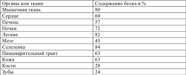 Приведем цифры содержания белков в организме человека (таблица 1).
