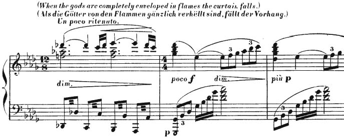 This, too, was excised, to the regret of the young Nietzsche. Ultimately, Wagner chose not to delay the denouement with philosophical musings. Brünnhilde proceeds directly to her final lines, in which she urges Grane toward the flames—“Does the laughing fire lure you to him?”—and jubilantly salutes her beloved: “Siegfried! Siegfried! See! In bliss your wife bids you welcome!”