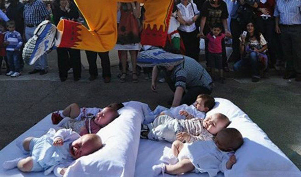 Христиане по всему миру веруют в догмат первородного греха. Согласно ему, каждый человек рождается во грехе из-за неповиновения Адама и Евы. Считается, что христианин может искупить эту вину, ведя праведную жизнь. Однако жители городка Кастильо-де-Мурсия в северной Испании выполняют обряд очищения новорождённых от этого греха – «Эль Колачо», известен как фестиваль прыжков через детей. Всех рождённых за последний год детей укладывают на матрацы вдоль улицы, а мужчины, наряженные чертями, совершают прыжки через матрацы назад и вперёд, чтобы очистить малышей от первородного греха.