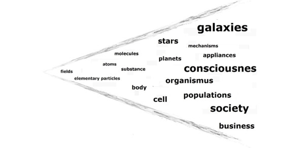 Traditionally, the scheme of science is presented in the form of a diverging beam, the tip of which is somewhere at the lower end of the axis along which you can line up all the objects of our world according to their complexity – from the smallest particles to galaxies, wildlife, consciousness… and somewhere further.