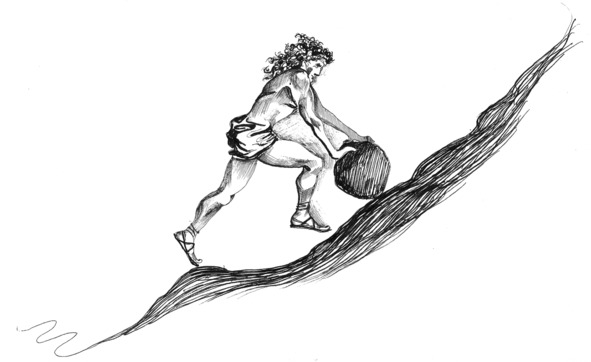 My ancestors went back to the ancient Greeks, who left mankind an incredibly rich gallery of symbolic meaning and intimate knowledge of mythological images. They inherited knowledge from the depths of centuries and created a fascinating and confusing world of heroes and gods. One of them was Sisyphus, the founder and king of Corinth, who tried to cheat death, for which he was condemned to the severe punishment by the gods – always lifting a heavy stone up the mountain. As soon as he reached the top, the stone would fall under its weight, and poor Sisyphus would come back for it and roll it up the mountain again and again. It became a symbol of painful but useless meaningless and fruitless labour and in the twentieth century French existentialists was raised to the banner of the absurdity of human existence.