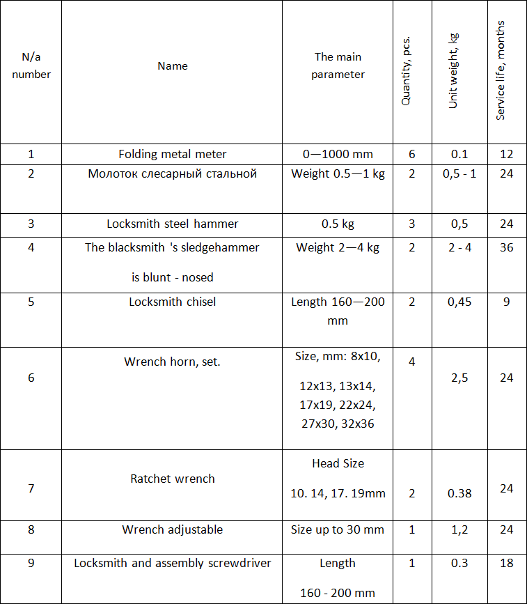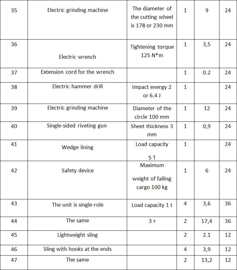 Recommended set of electric welding equipment and tools for a team of locksmiths – ventilators