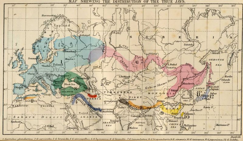 Importance of Locality as an essential character of Species—Areas of Distribution—Extent and Limitations of Specific Areas—Specific range of Birds—Generic Areas—Separate and overlapping areas—The species of Tits as illustrating Areas of Distribution—The distribution of the species of Jays—Discontinuous generic areas—Peculiarities of generic and family distribution—General features of overlapping and discontinuous areas—Restricted areas of Families—The distribution of Orders.
