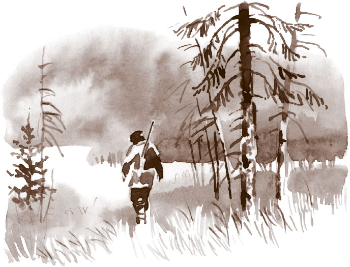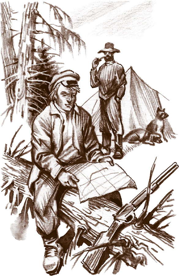 Мужчина вернулся в палатку, потом снова вышел на поляну, держа в руках старую берданку[4]. Теперь у него на ногах были мягкие унты из оленьей шкуры, и он, бесшумно ступая, направился в чащу леса. Как раз в этот момент из соседней палатки выглянул молодой человек довольно высокого роста. Это был зверолов Томек Вильмовский, который с отцом и несколькими друзьями охотился в приамурской тайге. Увидев уходящего проводника, юноша, несмотря на то что был полуодет, побежал вслед за ним.