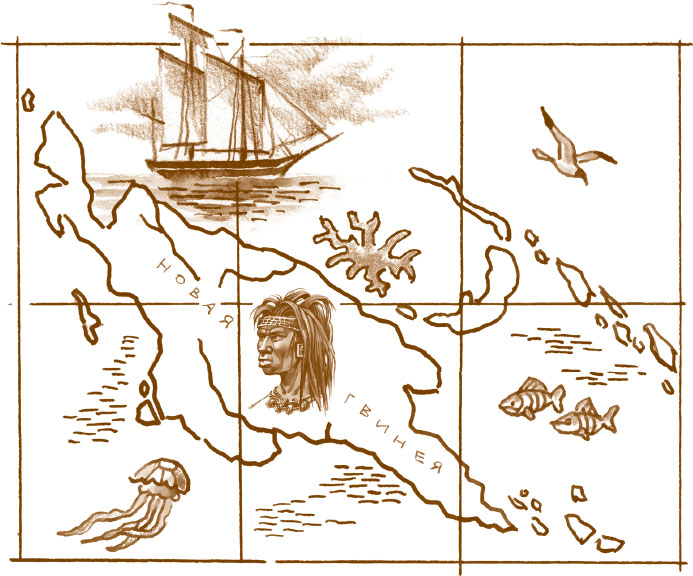 Элеле Когхе шел по тропинке, вьющейся среди зарослей, которые покрывали горный склон. Напрягая зрение, Элеле внимательно вглядывался в чащу тропической зелени. Его голову, покрытую густыми, как войлок, волосами, украшали яркие разноцветные перья райских птиц. Султан[2] из перьев, придерживаемый на макушке сеткой из древесных волокон, походил на широко развернутый веер, блестевший пурпурным цветом крови. По верованиям некоторых папуасских племен, перья этой величественной и красивой птицы не только способны защитить воина от раны, полученной в открытом бою или коварно нанесенной из засады, но и являются весьма могущественным амулетом против пури-пури, то есть колдовства, которого боятся самые отважные воины. Вот почему храбрый Элеле Когхе никогда не расставался с чудодейственным султаном и даже получил от своих соплеменников имя, которое на местном наречии означает «Красная Райская Птица».