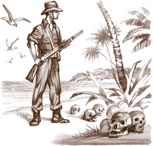 Элеле Когхе, как и все другие мужчины, обитающие в глубине огромного таинственного острова, с малолетства воспитывался воином и охотником. На правом плече Элеле нес знаки своей воинской доблести: лук из пальмового дерева, длинные стрелы с зазубринами, копье и каменный топор, крепко привязанный лыком к деревянному топорищу.