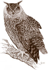 Филины (Bubonidae) отличаются главным образом пучком оттопыренных перьев над каждым ухом. Голова их велика и украшена значительными ушными пучками; клюв сильный, снабженный коротким крючком, ноги также сильные, высокие; пальцы толсты и вооружены кривыми когтями; крылья тупые, хвост короткий, усеченный; оперение очень густое и рыхлое. (А. Брэм. Жизнь животных, т. 2.)