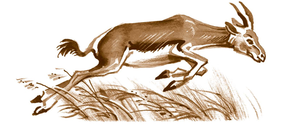 Роща внезапно ожила. Когда охотники приблизились на расстояние нескольких десятков метров, стадо газелей длинными прыжками выбежало на равнину.