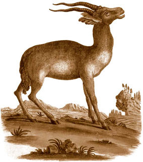 Далее нужно указать на газелей (Gazella), стройных, чрезвычайно миловидных, с кольчатыми лировидными рогами (у обоих полов), слезными ямками и длинными острыми ушами. Газель представляет в пустыне прекрасную картину, которая с давних пор вдохновляла восточных поэтов, увлекательно воспевавших это красивое создание и бравших от него высшие сравнения для выражения красоты женщины. Длина газели (A. dorcas) – до 1,1 м при высоте 60 см. Стройное туловище ее, оканчивающееся длинным, с густыми волосами на конце хвостом, опирается на чрезвычайно нежные, стройные ноги с изящными копытами. Голову средней величины украшают большие, огненные, оживленные, почти с круглым зрачком глаза.